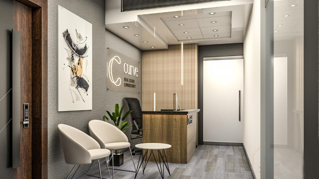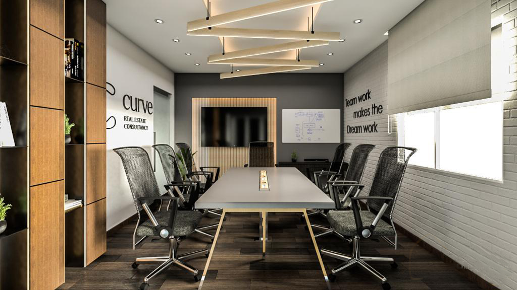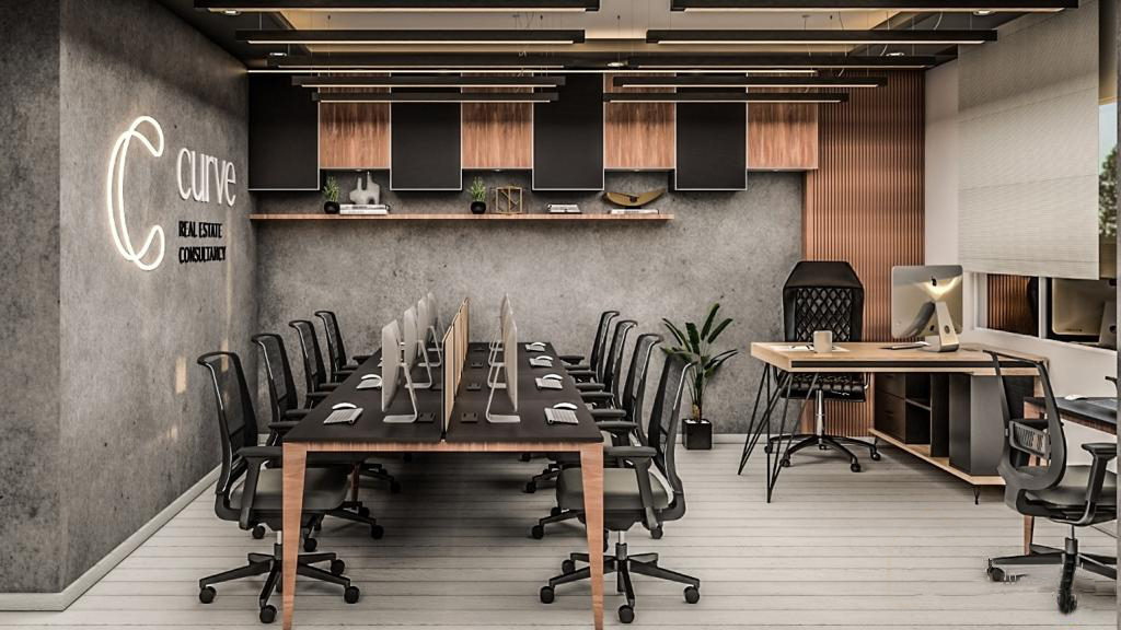 A modern corporate office space designed to inspire productivity and reflect brand identity through innovative interior solutions.